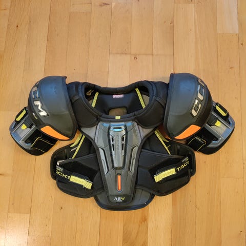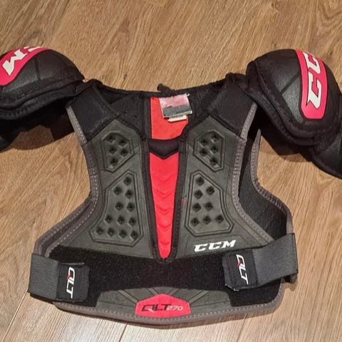 Myydään erittäin hyväkuntoiset CCM QLT250 jääkiekko hartiasuojat koko Jr. M (1.45-1.58m, rinnan ymp. 76-82cm).