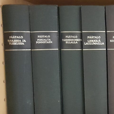 Iijoki sarja on kokonaan ja muita tuotantoja siihen päälle. Mielellään möisin kaikki kerralla pois. 37kpl päätalo kirjoja. Kulkeutuu Oulun suunnalle menojen mukaan.