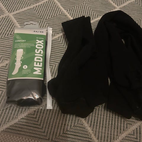 luomupuuvillasta valmistetut porrastetut kompressiosukat, joiden kompressio on 15–18 mmHg ja jotka ulottuvat polvipituisiksi. Koko 42/44. Uudet.