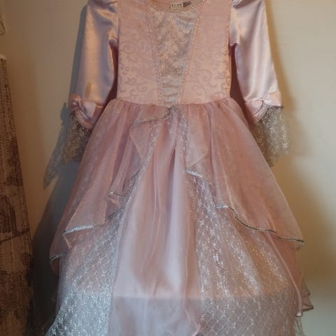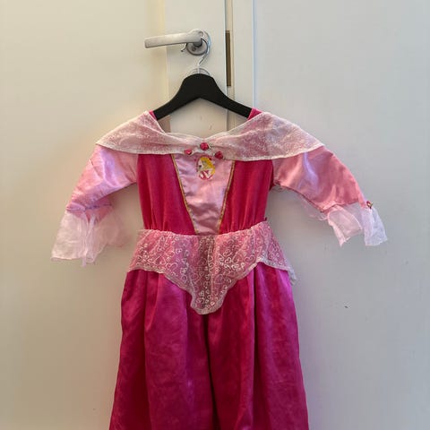 Disney prinsessamekko koko 5/6, vastaa noin kokoa 116 cm. Pieni purkauma takana (kuva 3), muuten siisti.