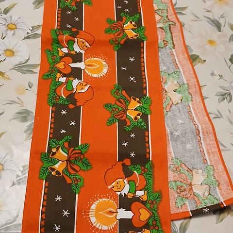 Hakusanat tonttuliina joululiina pöytäliina retroliina retro vintage vintageliina tonttu tonttukoriste joulukoriste joulutekstiili