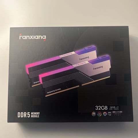 Two Crucial DDR5 RAM sticks 2x32GB, 64GB total, transfer speed 6400 MT/s. Timings 40-40-40-84. Compatible with Intel and AMD cpus.