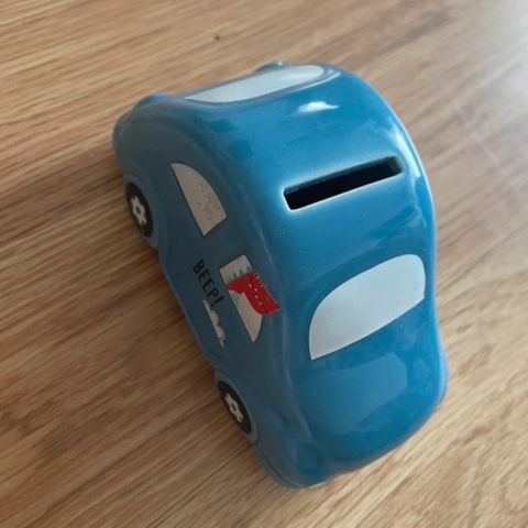 Söpö ja iso säästöporsas esimerkiksi lastenhuoneen sisustukseen tai jopa leikkeihin. Vastapuolella aukko. Ehjä ja siisti.