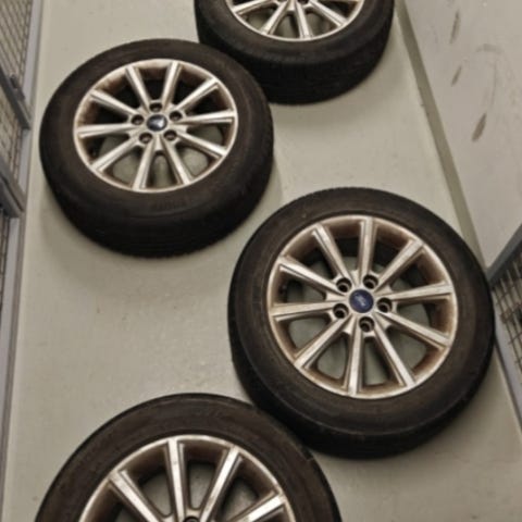 Myydään Ford Mondeossa olleet hyväkuntoiset kesärenkaat vanteineen.