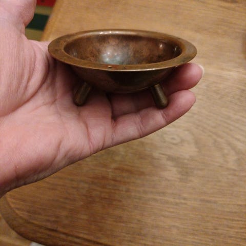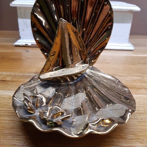 Kyseessä on kuparinen, simpukanmuotoinen leivonta- tai hyytelömuotti, jossa on ripustuslenkki.