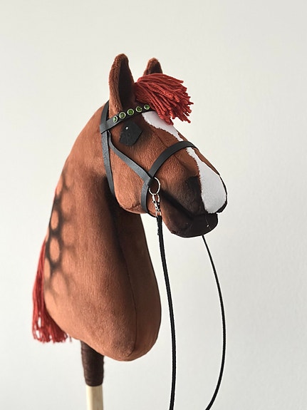 Valmistuksessa käytetty velboa kangasta ja tukikangas liimattu kankaan nurjalle puolelle jotta keppihevonen säilyttää kauniin ja ryhdikkään muotonsa.