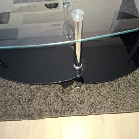 Retro, vintage lasipöytä harmaa ehjä lasikansi ja Teak-runko