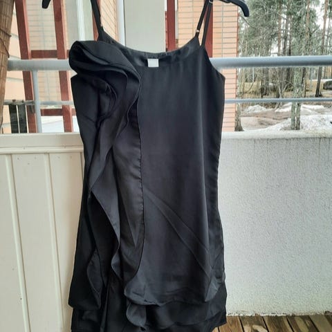 Vila musta röyhelöinen juhlamekko. Kokoa S