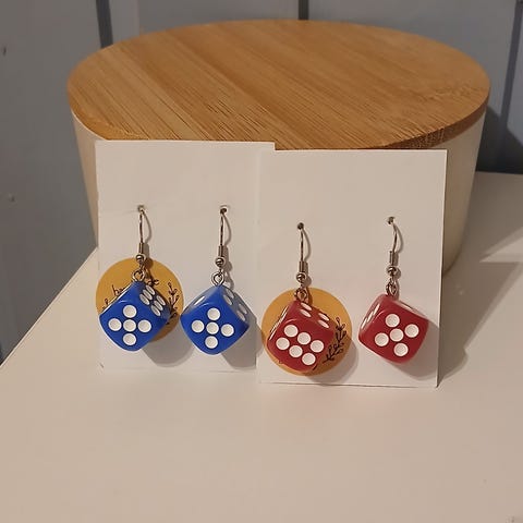 Myydään hyväkuntoisia noppa korviksia. Koukut ei sisällä nikkeliä.