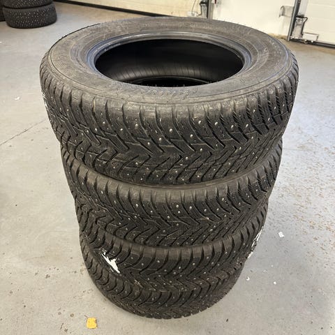 Käytetyt nastarenkaat. Kulutuspintaa hyvin jäljellä. Nastat tallella.
