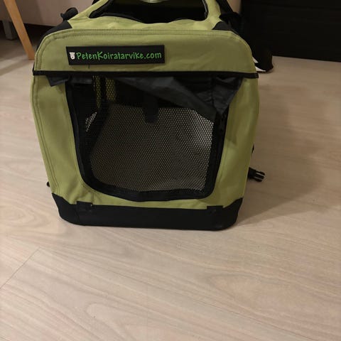 Aikanaan pari kertaa käytetty erittäin siisti kangashäkki. Kaikki vetoketjut ehjiä. Tarranauhat priimat. Irrotettava pohja ja pohjakangas vaihdettavissa ja pestävissä. Kulkeutuu välillä Karjaa-Nummela-Vapaala.