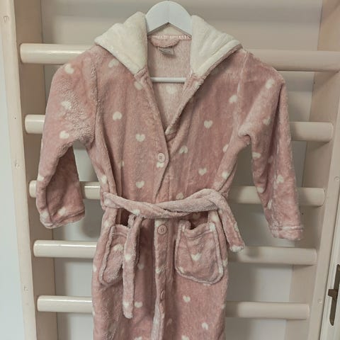 Hyväkuntoinen, vähän käytetty Ratian kylpytakki. Beiget/harmaat raidat, vaalealla pohjalla. Koko 100