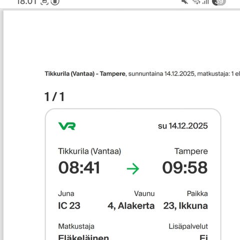 Ostan junaliput TIKKURILA - OULU TIKKURILA! 27.12.25 / 1.1.26