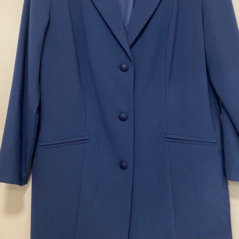 Kotimainen käyttämätön Muoti-Hovi Carolin puolipitkä jakku. Keskisininen, vuorillinen, kolmella napilla ja sivutaskuilla. Kankaassa myös villaa! Koko mielestäni paremminkin 38 kuin 36 koska on reilumpi malli.