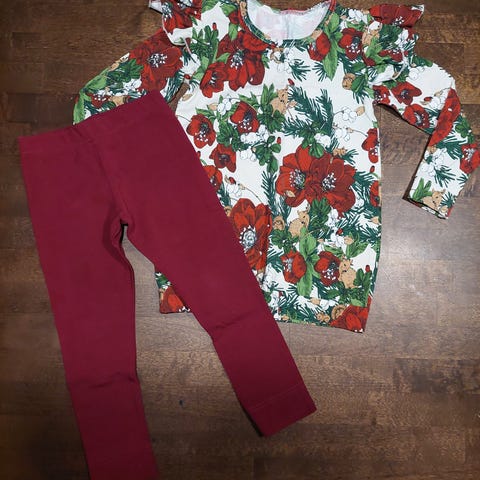 Tästä ihana setti jouluksi. Yhdellä tytöllä, yhtenä joulun aikana käytössä ollut. Itse ommeltu tunika ja legginssit.