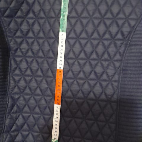 Muutama tahra nähtävissä, ei ole huomattavia. Takana yksi tikkauslanka puuttuu noin 10 cmn verran (katso kuvat)
