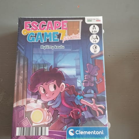 Clementoni Escape Game -taskupeli nimeltään "Hylätty koulu". Peli on suunniteltu tarjoamaan pakohuonekokemuksen kotioloissa.