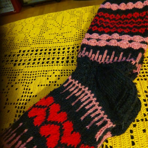 Käsin kudotut pitkävartiset villasukat
