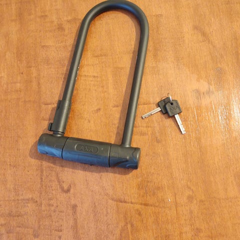 Pyörän lukko AXA merkkinen kahdella avaimella.