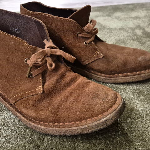Englantilaiset Clarks mokkanahkakengät 1980-luvulta. Clarks koko 42,5 (sisämitta 26,7cm). Nouto Katajanokalta tai Tori Diilinä.