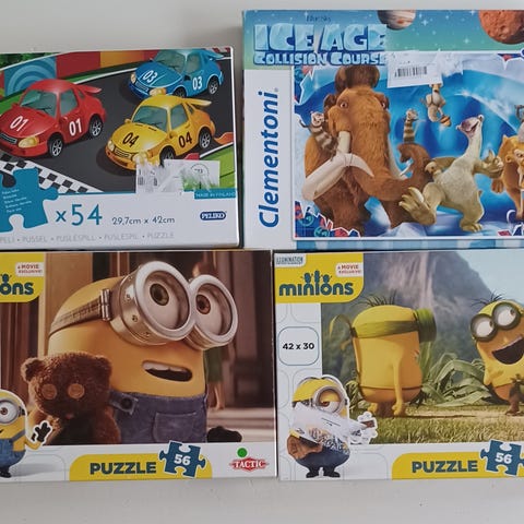 Kolme puista palapeliä. Yhdessä magneetti hinausauto, jolla autopalat nostellaan. Yhdessä äänet, patterit loppu. Myydään yhdessä tai erikseen.