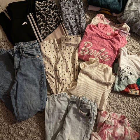 Myydään käytetyt farkut joustavat, leggingsit ja urheiluvaatteet. Käytetty eläintaloudessa. Hinta yhteensä 8 euroa. Nouto tai postitus