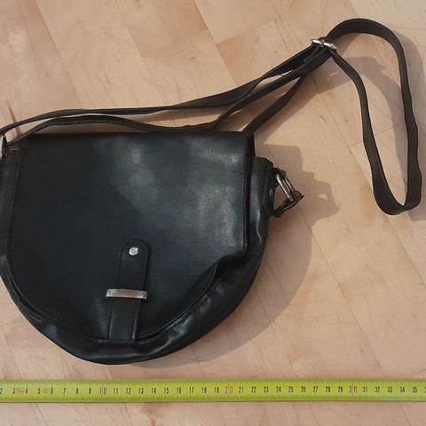 H&M Divided naisten olkalaukku, valmistettu polyesterista. Laukussa on läppä suljettavana osiona ja pitkä olkahihna kantamista varten. Sisätilat sisältävät vetoketjullisen osion ja tilaa henkilökohtaisille tavaroille.