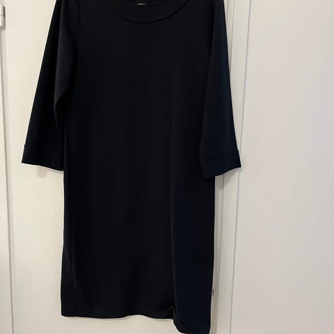 Nanso musta trikoopuuvillamekko, naisten koko S. Vyötäröllä kuminauharypytys. Käy myös tunikana.
