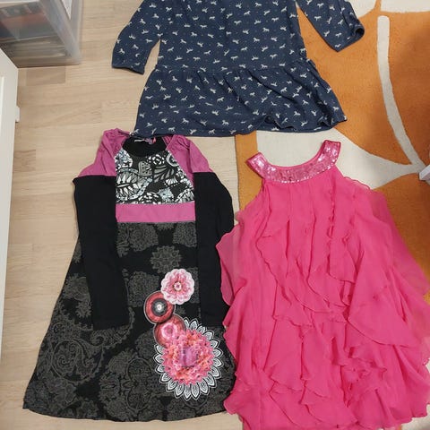 Myydään käytetyt mekot. Vaaleassa ruusumekossa pieni tahra, en ole yrittänyt poistaa sitä. Kuva siitä. Käytetty eläintaloudessa. Nouto tai postitus. Hinta yhteensä 8 euroa.