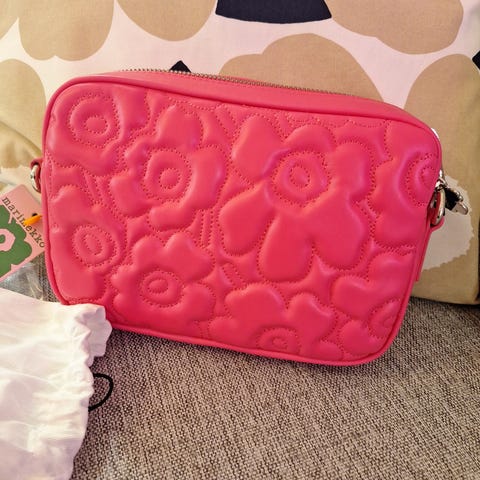 Uusi, käyttämätön Marimekko vaaleanpunainen unikko Gratha laukku.