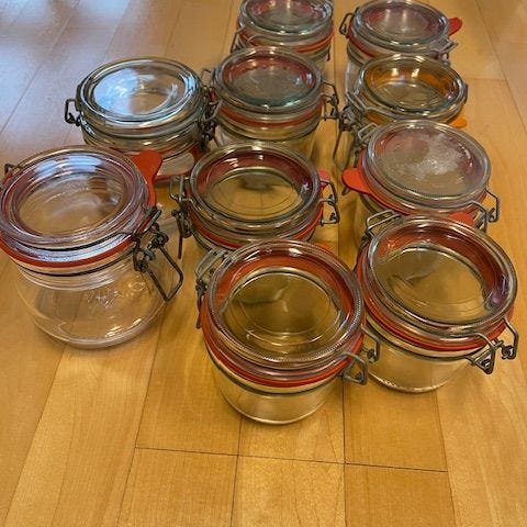 Myydään laadukkaat lasiset säilytyspurkit kultaisen värisellä kannella. 8kpl koossa 1L, 6kpl koossa noin 4,5dl. Hyväkuntoisia. Tilattu saksasta ekokaupasta, ei luovuta haitallisia kemikaaleja. Dymolla tehdyt tarrat kiinni, saa halutessaan vaan otettua pois.