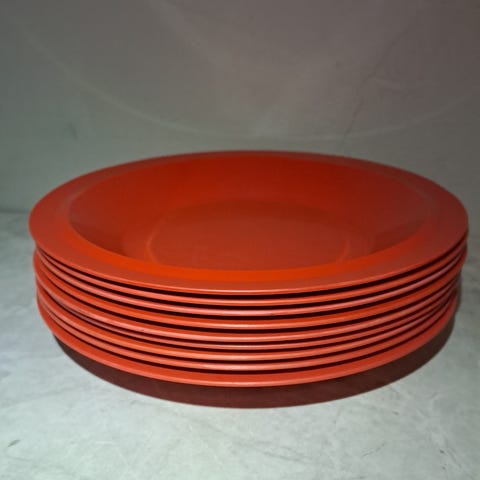 Fiskars Fiskamin 1502 kahvikupit ja lautaset valmistettu 1960-luvulla melamiinista. 4 settiä virheettömiä. Muut kupit tulee kaupanpäälle (yhteenä kuppeja 11 ja lautasia 4) sillä niissä on pohjassa pieni halkeama mikä näkyy viimeisessä kuvassa. Ei haittaa käytössä.
