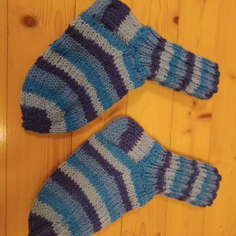 Käsinneulotut villasukat, koko joustava 30, pohjan pisin kohta 19 cm. Novitan lanka, konepesu 40 astetta. Nouto tai postitus.
