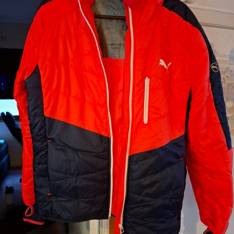Pojalle Intersportista ostettu Puman käännettävä toppatakki. Meillä käytetty vain mustaa puolta. Siisti ja lämmin (ei pesty kertaakaan).