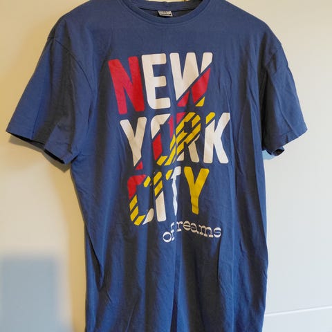 Myydään House merkin sininen tekstiprintti paita "New York City of Dreams", koko 140cm.