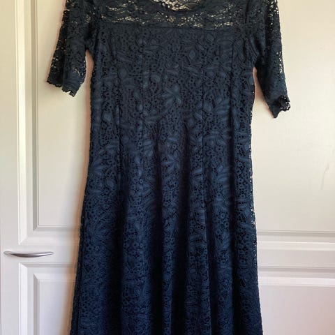 Your facen musta / syklaami pitsimekko kokomerkintä XL, sopii parhaiten L -kokoiselle. Kai-kai 53 cm venyttämättä, olka-helma 95 cm. Syklaamin punainen vuori näkyy hyvin salamalla otetussa kuvassa. Vuori joustavaa ohuehkoa trikoota, päällikangas myös joustavaa. Pitsissä hyvä struktuuri. Hihat läpikuultavaa sifonkia. Mekkoa ei ole pidetty, laput vielä paikoillaan. Savuton, lemmikitön talous. Postitus onnistuu.
