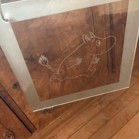 Myydään kaksi kaunista Muurlan Muumi-aiheista lasitaulua Muumi-keräilijälle.