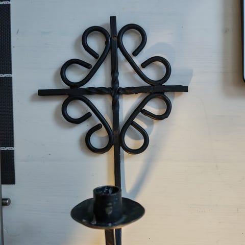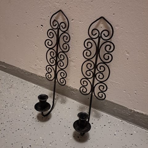Myydään kaunis seinällä pidettävä rautainen kynttiläteline.