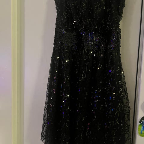 Kaunis juhla-/cocktailtilaisuuksiin sopiva mekko, koko M. Materiaali polyesteri/nylon. Naruolkaimet. Vuoren alaosassa on tylli, joka kohottaa helmaa. Nouto tai postitus. Maksu MobilePay tai käteinen