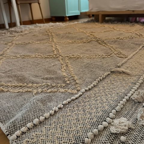 Hyväkuntoinen&valtava puuvilla- / nukka-matto. Kaipaa tamppauksen! Ollut varastossa, on vähän pölyinen.