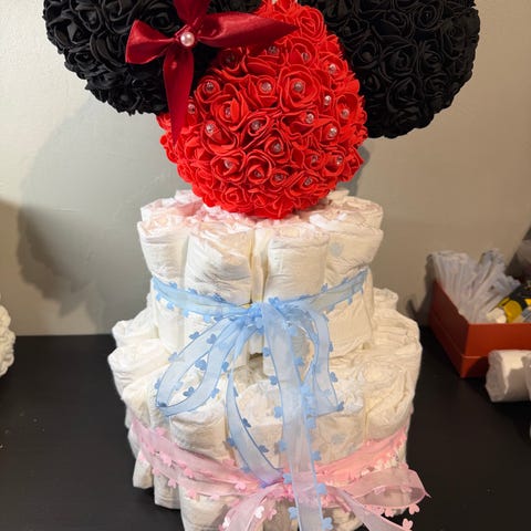 Ilahduta perhettä suloisella pienellä vaippakakulla jossa vaippojen lisäksi vauvalle oma ensimmäinen joulukuusen koristepallo weisteltä sekä vauvalle uudet mam tutit (2kpl) ja vaipat. Loistava lahja esim babyshower tai kastelahjana.