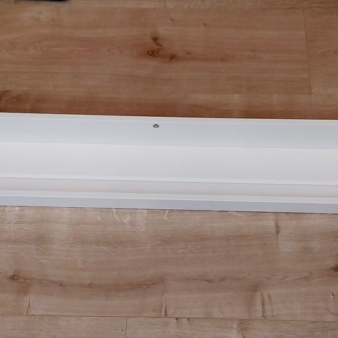 Jyskin valkoiset taulukourut (+ kiinnitysruuvit) 2kpl. Kourun syvyys 4,5 cm, pituus 115 cm. Tuotteiden yleisilme siisti. Taulujen kehyksistä jäänyt muutamia viiruja. Nouto Lauttasaaresta.