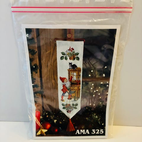 Hakusana : ristipisto , ristipistotyö, tonttu , tontut, tonttutupa, tonttutyttö ja kissa , joulu kirjonta , seinävaate, joulu sisustus, joulu, vanhanajan joulu, vintage, retro ,perinteinen