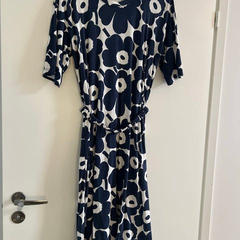 Vaaleanpunaisilla unikoilla oleva mekko Marimekolta. Muutamia kertoja vain olen raaskinut pitää juhlavampana mekkona ja raskauden jälkeen jäänyt turhan napakaksi. Kangas on toki joustavaa. Myyn seuraavaan kotiin tämän ihanan kauniin mekon koossa S.