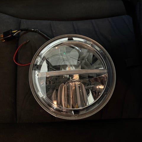 Punainen pyöreä LED-takavalo, jossa punaiset LED-valot ja musta takakansi. Valossa on kiinnitysruuvit ja johdot sähköliitäntää varten.