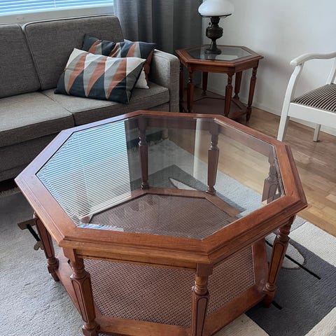 Tilanpuutteen vuoksi myynnissä sohva pöytä.paksua lasia.välihylly vaaleaa lasia.siisti ja ehjä.erittäin tukeva kaksi osainen.