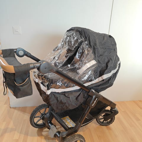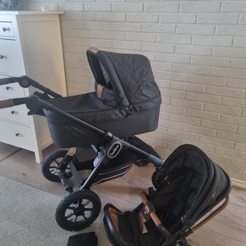 NXT90 Outdoor Trek yhdistelmävaunut, ergo-istuin, ilmakumirenkaat ja tumman harmaa kangas. Ostettu vuonna 2021. Kaksi lasta yhteensä käyttänyt. Koiratalous. Aina sisällä säilytetty. Käytönjälkiä näkyy erityisesti nahkaosassa, josta työnnetään, mutta yleisilme kokonaisuudessaan tosi siisti. Alaosaa ei ole puhdistettu erityisesti hiekasta. En nähnyt tarvetta pestä kankaita, pesu jää ostajalle jos kokee tarvetta.