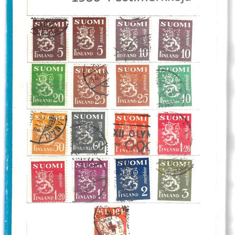Suomi Vuosien 1925-1927-1929 Hakaristi- ja Postitorvivesileimaiset postimerkejä
