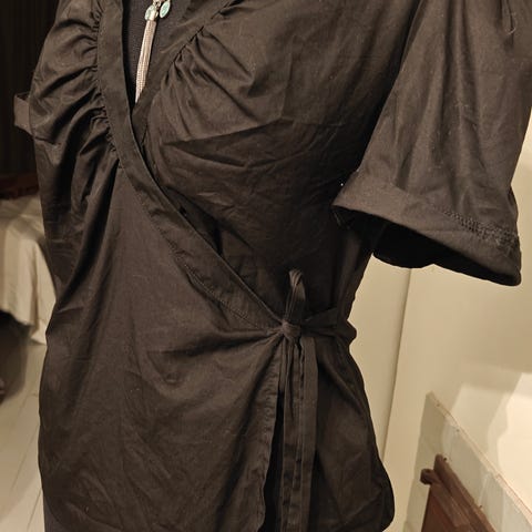 Myydään Vilan juhlava kietaisupaita koko 40, väri sininen, himmeästi hohtava materiaali, viskoosia 80 %. Hinta 15 euroa + mahdollinen postitus.