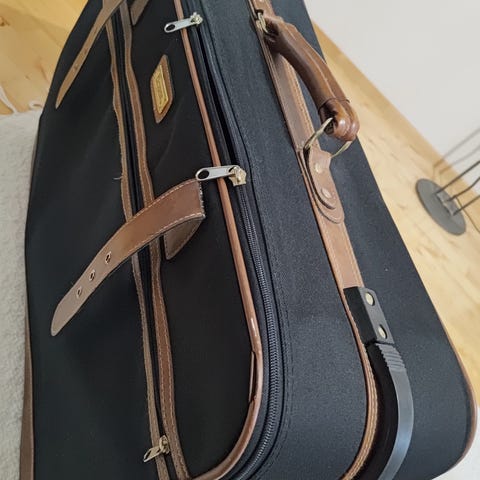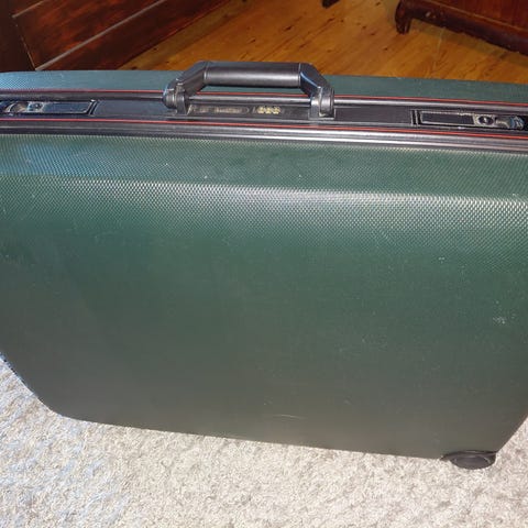 Mundial merkkinen iso oranssi matkalaukku. Kankainen laukku. Numerolukitus vetoketjuille. Lukkoon on ohjeet tallella. Kantokahva päällä ja sivussa. Päällä myös korkea vetokahva mikä painuu laukun sisään. Renkaita on yhdessä rivistössä ja kaikki on irronnut. On tallessa, jos haluaa korjata tai virittää jotain muuta. Käy vielä tavaroiden säilytykseen tai auton kanssa matkustamiseen. Ajaa asiansa, jos ei tarvitse kävellen liikkua tai jaksaa kantaa laukun. Iso laukku minne mahtuu etelän reissun vaatteet. Parilla reissulla ollut mukana ja viimeisimmällä hajosi renkaat. Muuten on käytönjälkiä siellä täällä. Edessä on kiristysnaru. On erilliset taskut edessä 2 kpl ja littana laukun kokoinen lokero. Sisällä on iso laukun kokoinen verkkotasku sekä laidalla vetoketjullinen tasku. Laukkuun saa myös laajennusosan avattua vetoketjulla, jos tavaraa on paljon. Takana on myös vetoketjullinen tasku. Itsellä laukku on lantiolle saakka. On siis iso tilava laukku minne mahtuu paljon tavaraa.